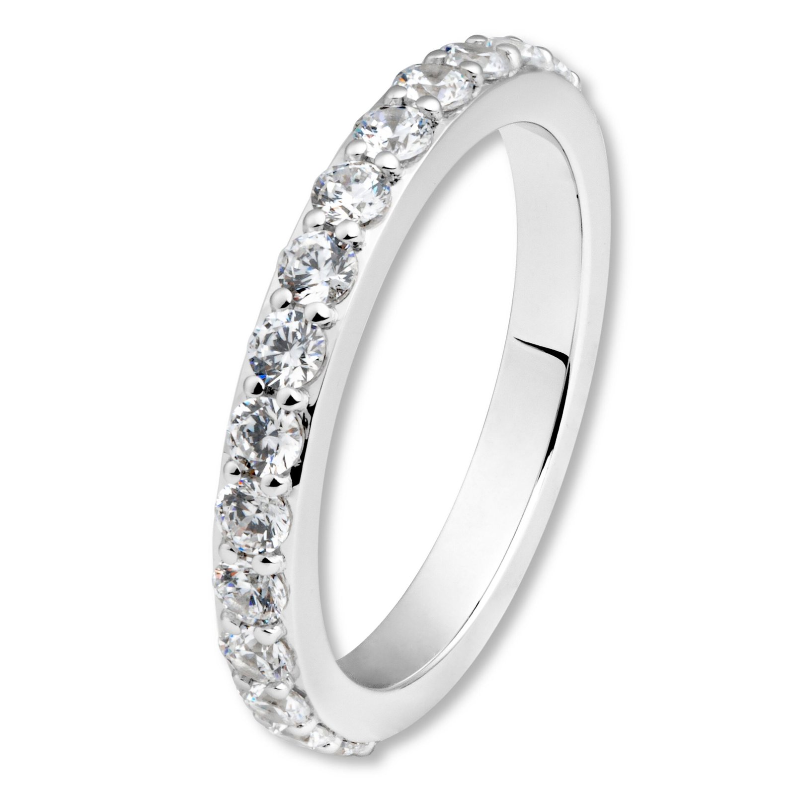 Mit einer Breite von 2,6 mm liegt er sanft am Finger, präsent aber unaufdringlich. Die Ringoberfläche ist zu 60% mit strahlenden Brillanten besetzt,