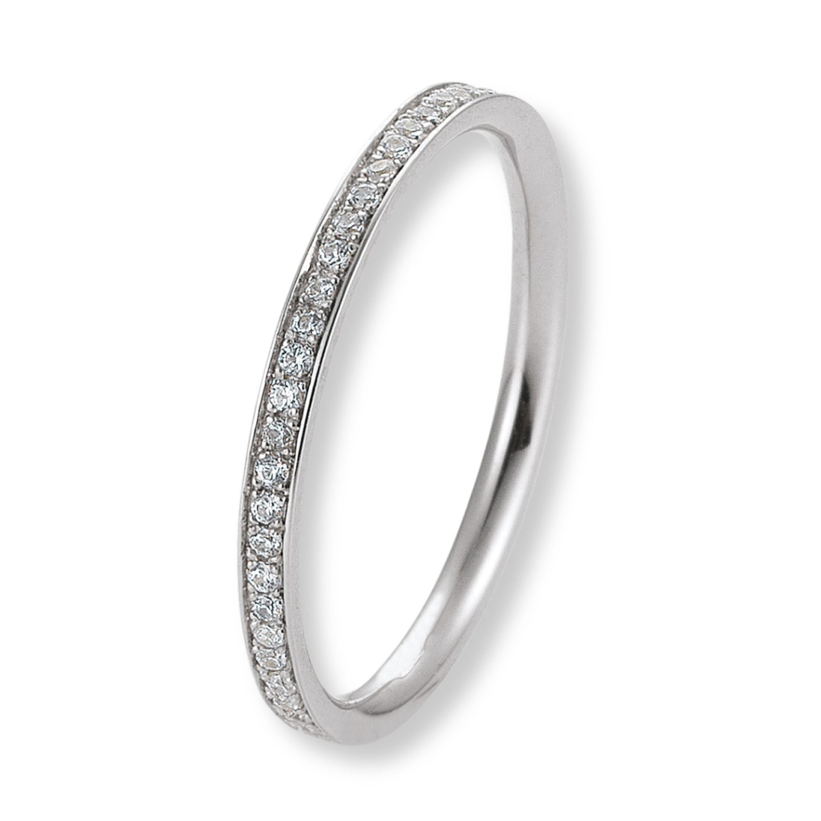 Mit einer Breite von nur 2mm ist dieser Ring herrlich zart und unaufdringlich, wodurch er sich wunderbar mit anderen Ringen kombinieren lässt, ohne diese zu überladen.Das Besondere an diesem Modell ist der 50%ige Brillantbesatz. Das bedeutet, die Hälfte des Ringumfangs ist mit funkelnden Brillanten besetzt. Dies erzeugt ein faszinierendes Funkeln, das bei jeder Bewegung des Rings sichtbar wird. Ob als Ergänzung zu einem bestehenden Set oder als Verlobungsring getragen – ein solcher Ring ist ein zeitloses und vielseitiges Schmuckstück. Er fängt das Licht auf wunderbare Weise ein und unterstreicht die Schönheit Ihrer Hand auf elegante Weise.