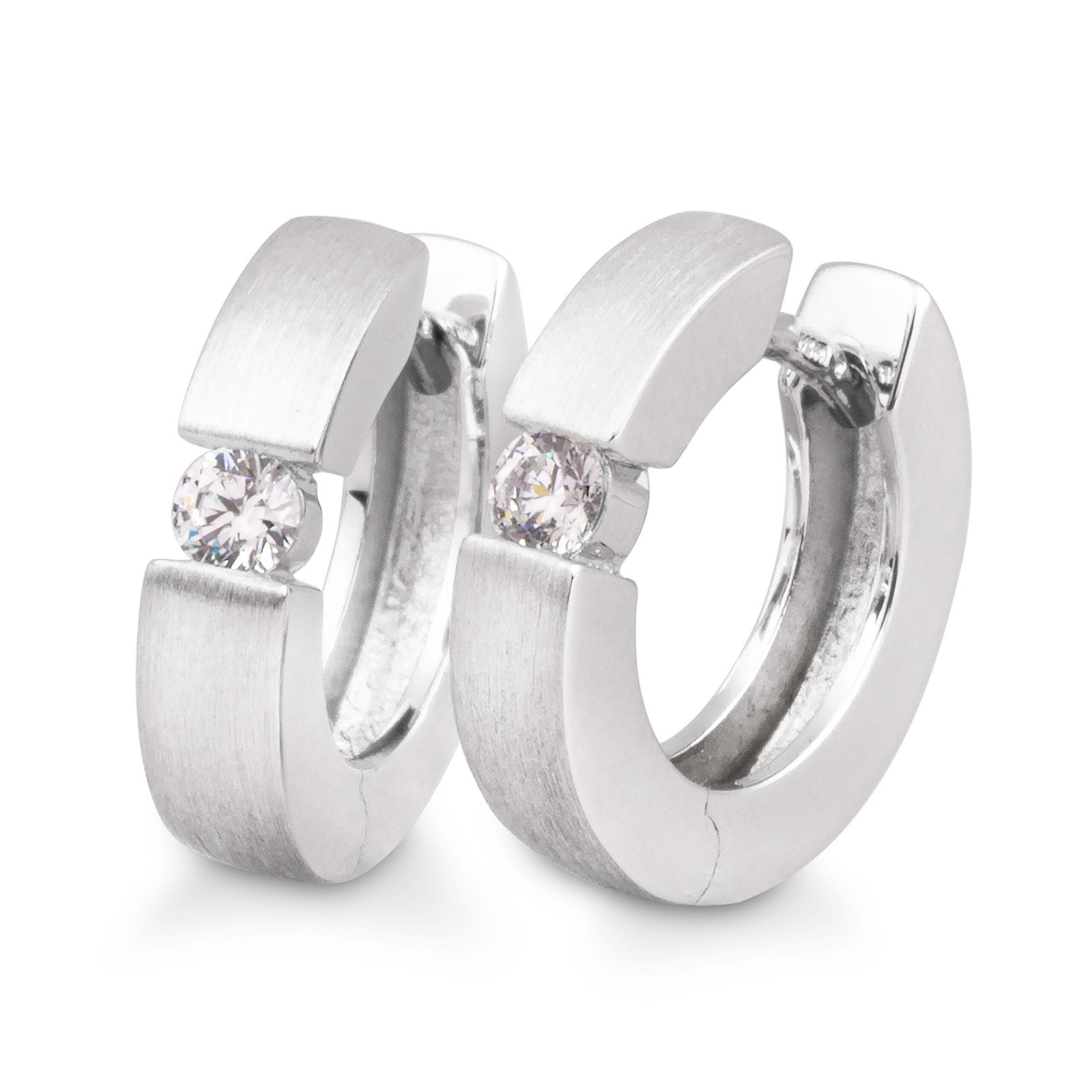 In jeder Creole erstrahlt ein strahlender Diamant im Brillantschliff diese haben zusammen 0,18ct in W/Si-Qualität.