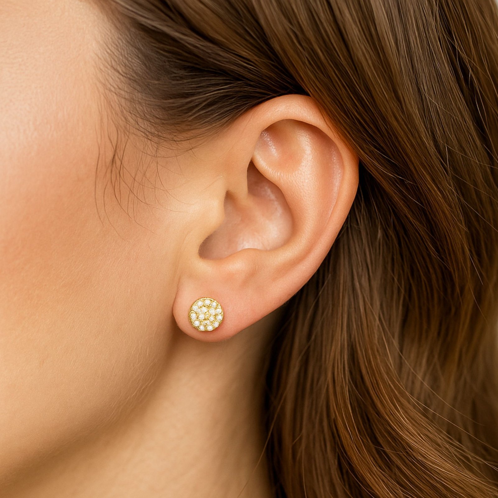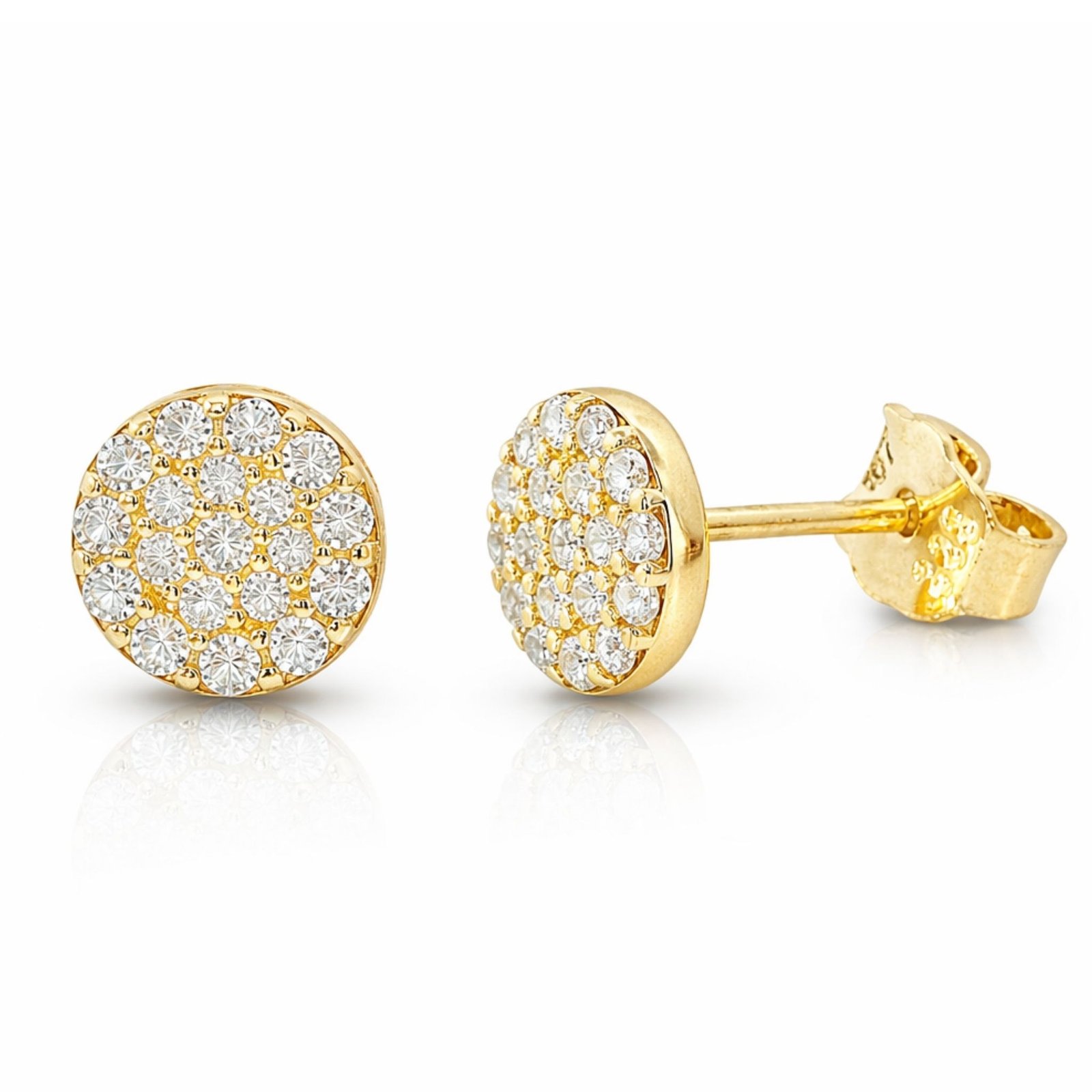 - Design: runde Ohrstecker mit glitzerndem Zirkonia-Besatz