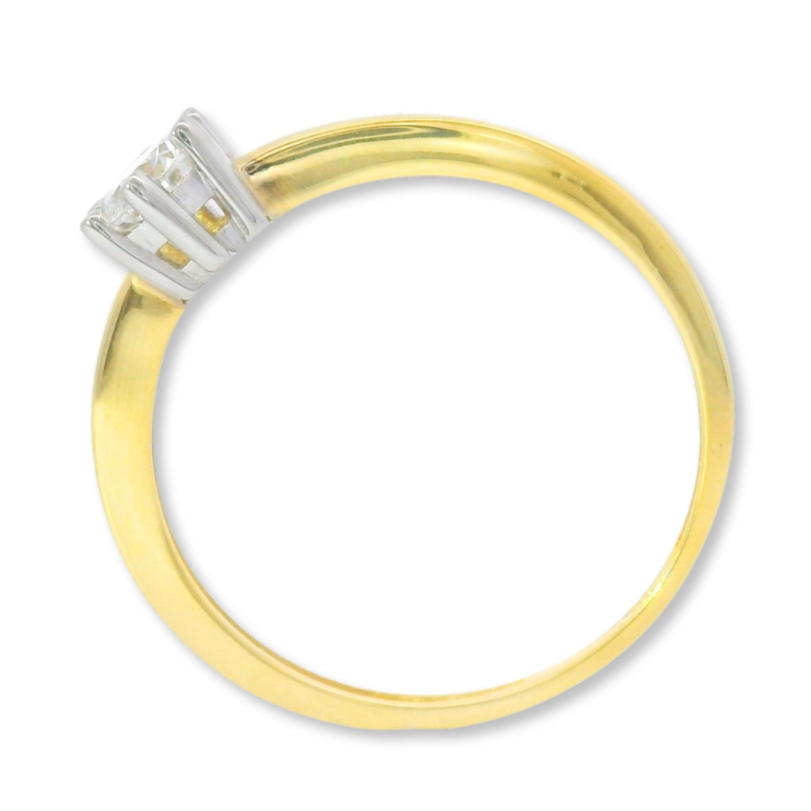 Die zarte Ringschiene aus warm glänzendem Gelbgold betont die klare Linienführung und unterstreicht die zeitlose Schönheit dieses Schmuckstücks.