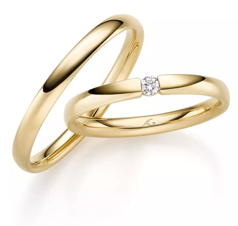 Der Damenring 2,5 mm breit wird durch einen funkelnden Brillanten von 0,05 ct veredelt, der mittig eingefasst ist und ein dezentes, stilvolles Highlight setzt. Der Herrenring 3 mm breit zeigt sich in klassisch-schlichtem Design, robust und elegant zugleich – ein perfekter Begleiter für jeden Tag.Diese Ringe sind ein Ausdruck von Liebe, Treue und Beständigkeit – für Paare, die Wert auf klassische Schönheit und höchste Qualität legen.