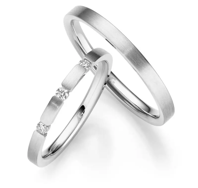 Trauringpaar Platin matt 3 Brillanten ab € 1598,-
