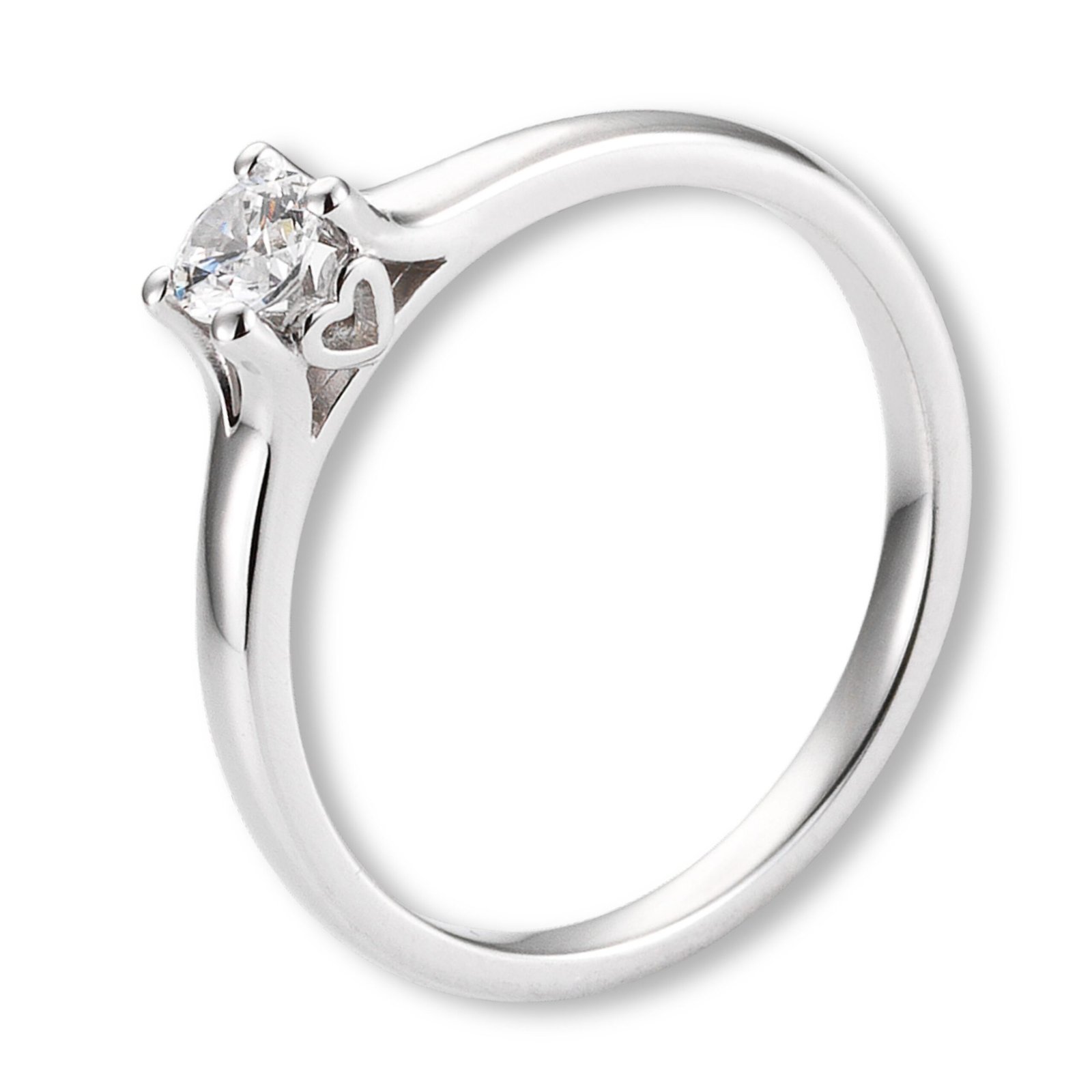 Im Zentrum des Rings sitzt ein wunderschöner Brillant im H/Si-Qualitätsgrad, der durch sein lebendiges Funkeln und seine Klarheit verzaubert. Das Besondere an diesem Ring ist die liebevolle Fassung: Auf der linken und rechten Seite des Brillanten sind kleine, zarte Herzen eingearbeitet, die den Ring zu einem einzigartigen Symbol der Liebe machen.