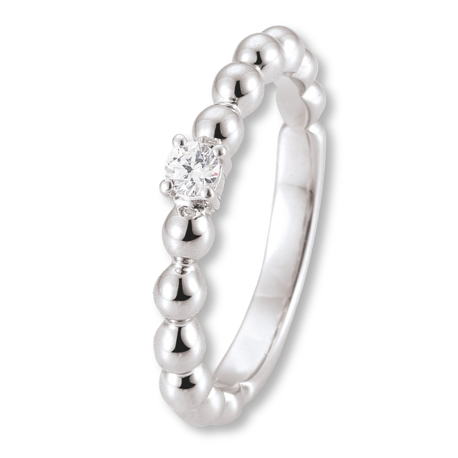 Im Mittelpunkt des Rings strahlt ein funkelnder Brillant mit 0,10 ct, der in einer klassischen 4er Krappenfassung gehalten ist.