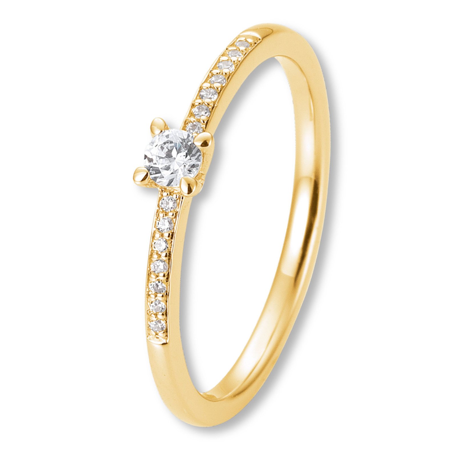 Im Zentrum sitzt ein strahlender Brillant mit 0,10 Karat, dieser Mittelstein symbolisiert das besondere Gefühl, das nur ihr beide teilt –