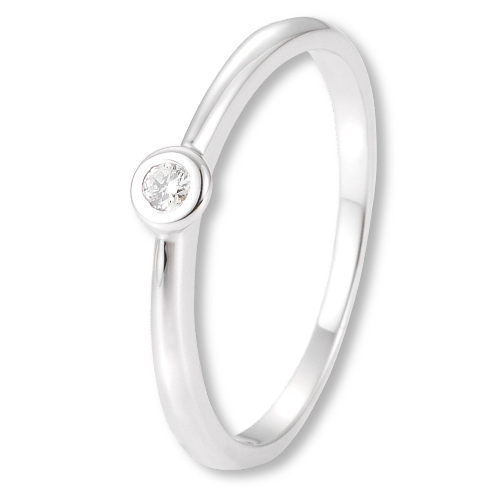 Im Mittelpunkt steht ein feiner Diamant im Brillantschliff mit 0,05ct in H/Si-Qualität, der durch seine elegante Zargenfassung besonders geschützt und zugleich stilvoll betont wird.